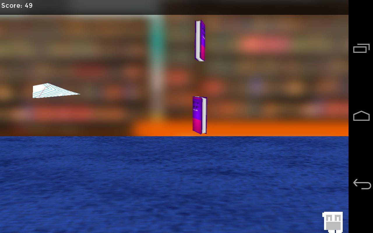 Fly the paper airplane through the storm of books to try to get the high score!