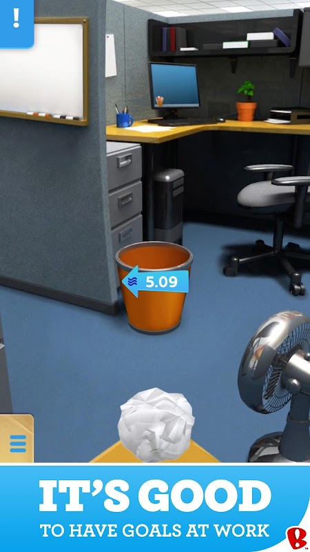 Have you ever been bored at work, crumpled up a piece of paper and counted how many times you can make it in a small trash can? Has your boss ever gone out for a quick bite while you and your co-workers see how far you can move the trash can away and still make the paper shot? Have you ever brought in electric fans to make the shot even harder? Backflip Studios is happy to announce that we have brought this amazing and hilarious experience to the Android.