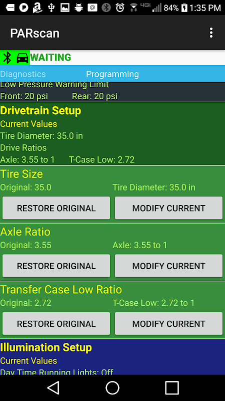 برنامه اندازه تایر و خواندن / پاک کردن کد های خطا در خود جیپ / دوج استفاده از یک دستگاه ELM327