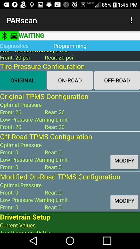 PARscan با ELM327 ابزار تشخیصی بلوتوث به خواندن / پاک کردن کدهای تشخیصی مشکل (DTC) و داده های به روز رسانی خودرو در چند خودروی جیپ، دوج، کرایسلر و مختلف با تمرکز اصلی بر روی جیپ رنگلر (هری) و دوج رام استفاده می شود.