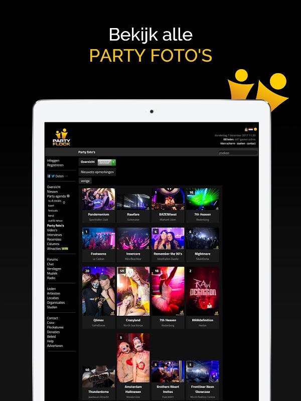 از سال 2001 PartyFlock است وب سایت مورد اعتماد خود را برای پیدا کردن همه جشنواره ها و رویدادهای در هلند بوده است. برای PartyFlock حاضر همیشه در دست است، همچنین برنامه PartyFlock وجود دارد. این سایت partyflock طیف موجود فقط با فشار دادن یک دکمه!