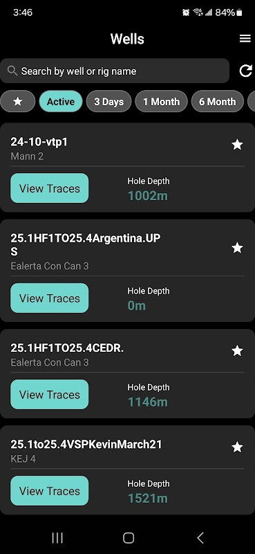 - لیستی از تمام چاه های فعال خود را با عمق حفر شده برای هر چاه نمایش دهید