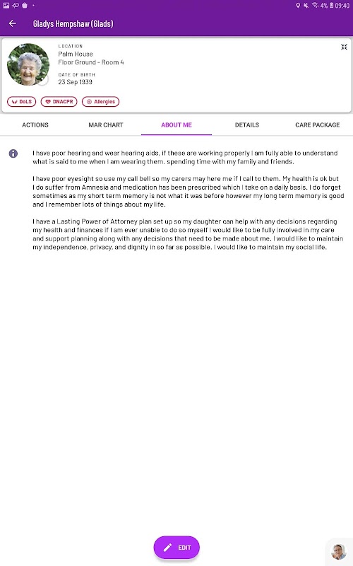 PASSforcare تمام اطلاعات کلیدی را در محل مراقبت فراهم می کند و به متخصصان مراقبت مجاز اجازه می دهد تا مسیرهای حسابرسی جامعی از تمام مراقبت های ارائه شده ایجاد کنند، به عنوان مثال: