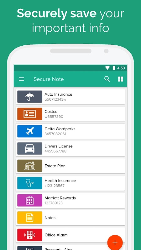 - Secure Notes همه چیزهای مهم شما مانند برنامه های سفر یا اطلاعات بیمه را در یک مکان ذخیره می کند