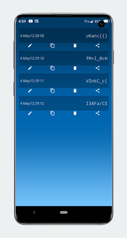 ویرایش، ذخیره، اشتراک گذاری، کپی رمز عبور ایجاد شده.
