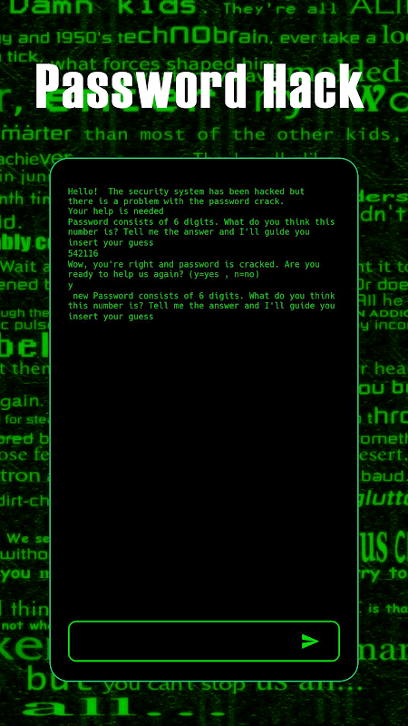 The game is about the hackers hacking into security, but they have come up with a problem that they can not fix, so your help for cracking the password may be needed.