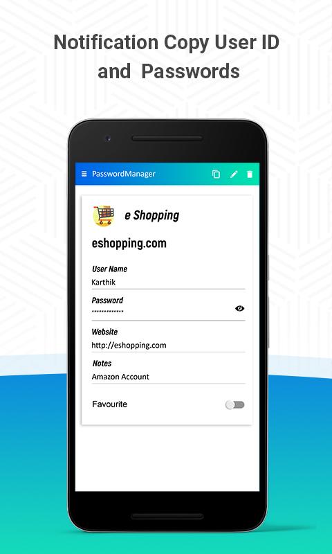 View all the saved passwords, which you have saved, Can make your info as favourite with a single tap, you can edit and also delete the data. Password Manager is the best solution to manage all your passwords at single place. You can copy all the passwords to clipboard except the Bank Account passwords as they were highly confidential. No screenshot allowed for the details.