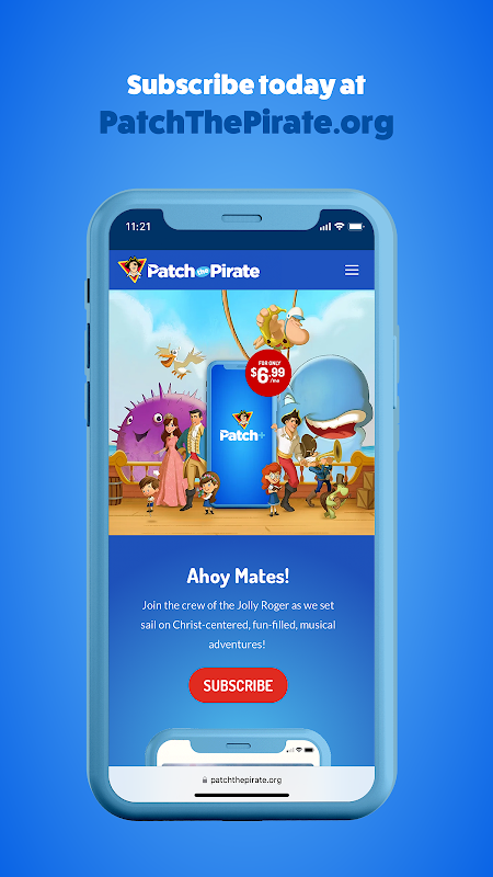 با صدها ساعت ماجراجویی صوتی، موسیقی و ویدیو، دنیای Patch the Pirate و Majesty Music را کشف کنید! یک حساب کاربری در PatchThePirate.org ایجاد کنید و برای شروع پخش از امروز مشترک شوید!