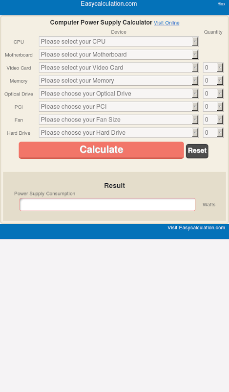 Calculate the power supply required by a PC with this calculator.