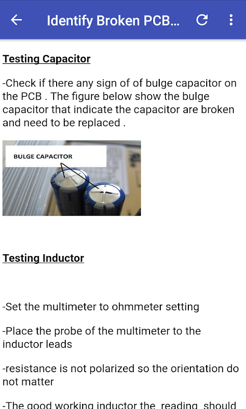 In this application you will learn many information about PCB repair such as how to identify broken PCB and also how to fix it.Not just that , you also can learn how to solder and desolder the basic electronic components on the PCB Boards.This apps can be use offline ( can be use without internet connection) .