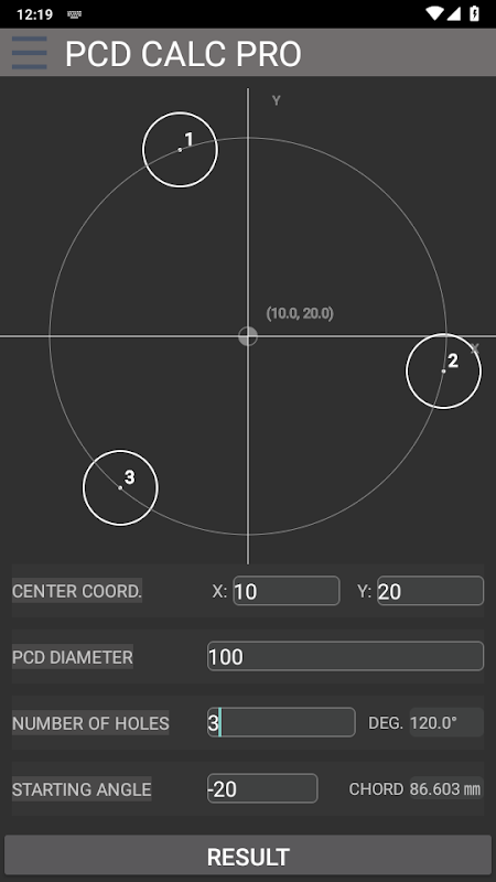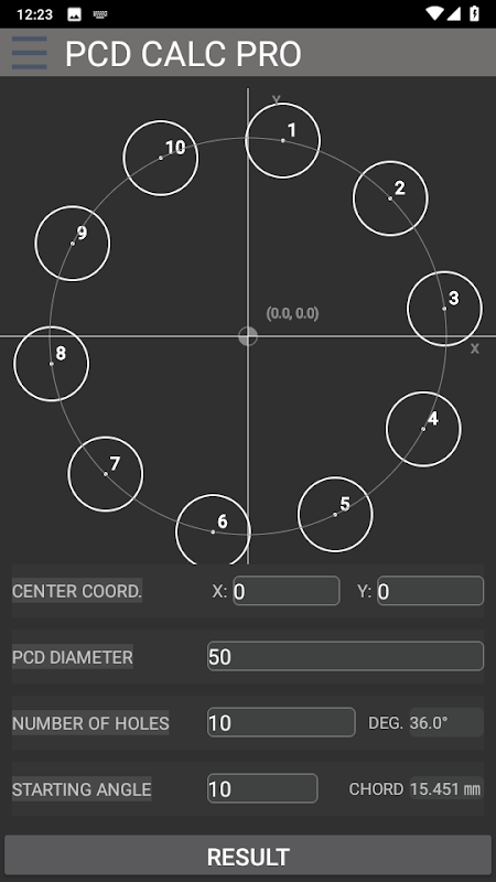 • محاسبه PCD بصری: به سادگی PCD، تعداد سوراخ ها و زاویه شروع را وارد کنید تا فورا مختصات X و Y را برای هر سوراخ دریافت کنید.