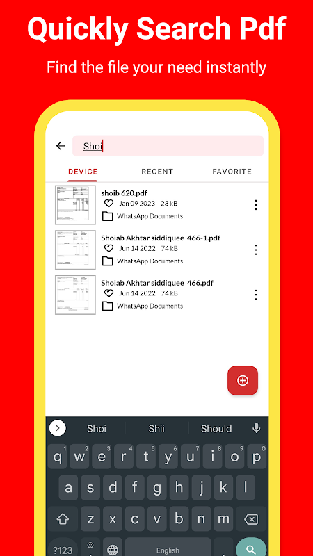 همه فایلهای PDF شما در یک مکان نمایش داده میشوند — نیازی به جستجو در گوشی شما نیست. فقط روی هر PDF ضربه بزنید تا باز شود و شروع به خواندن کنید. این PDF Reader سبک وزن کاملاً آفلاین کار می کند، بنابراین می توانید اسناد را در هر مکان و هر زمان مدیریت کنید.