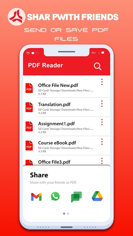 - کتابهای PDF Docx یا PDF را مستقیماً از PDF خوان به اشتراک بگذارید.