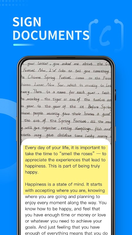 Turn the device's camera into a practical OCR scanner, and it only takes a few seconds to convert all paper documents to PDF.