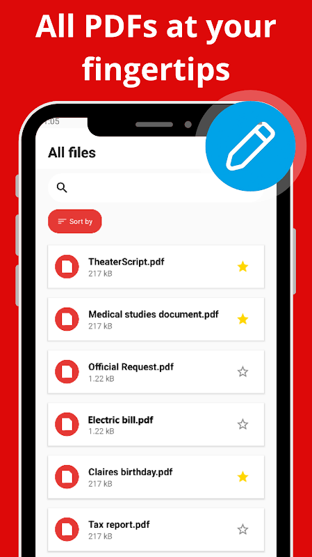 پیدیاف خوان بهطور خودکار دستگاه شما را اسکن کرده و همه اسناد PDF شما را در یک فهرست تمیز و مرتب نمایش میدهد. با جستجوی نام یا کلمات کلیدی محتوا، فایلها را تنها با یک ضربه باز کنید. این اپلیکیشن تمام فایلهای PDF را بهطور خودکار شناسایی میکند و دسترسی سریع به کتابها، فاکتورها، رسیدها، قراردادها، یادداشتهای درسی و موارد دیگر را فراهم میسازد.