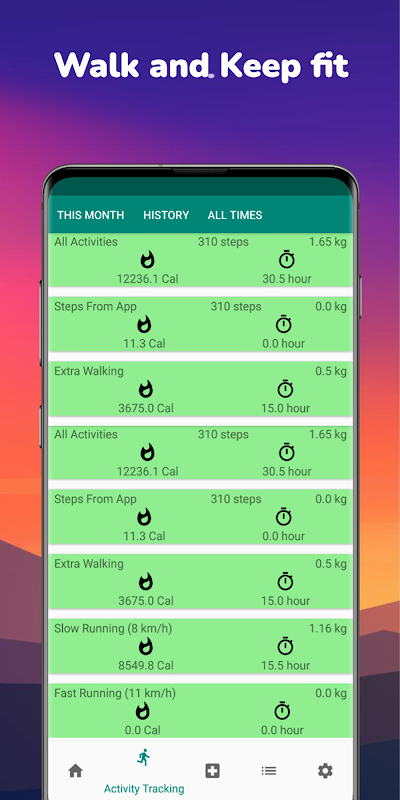 این برنامه گام شمار هم راه رفتن، هر فعالیتی را ردیابی می کند و هم کالری را می شمارد.