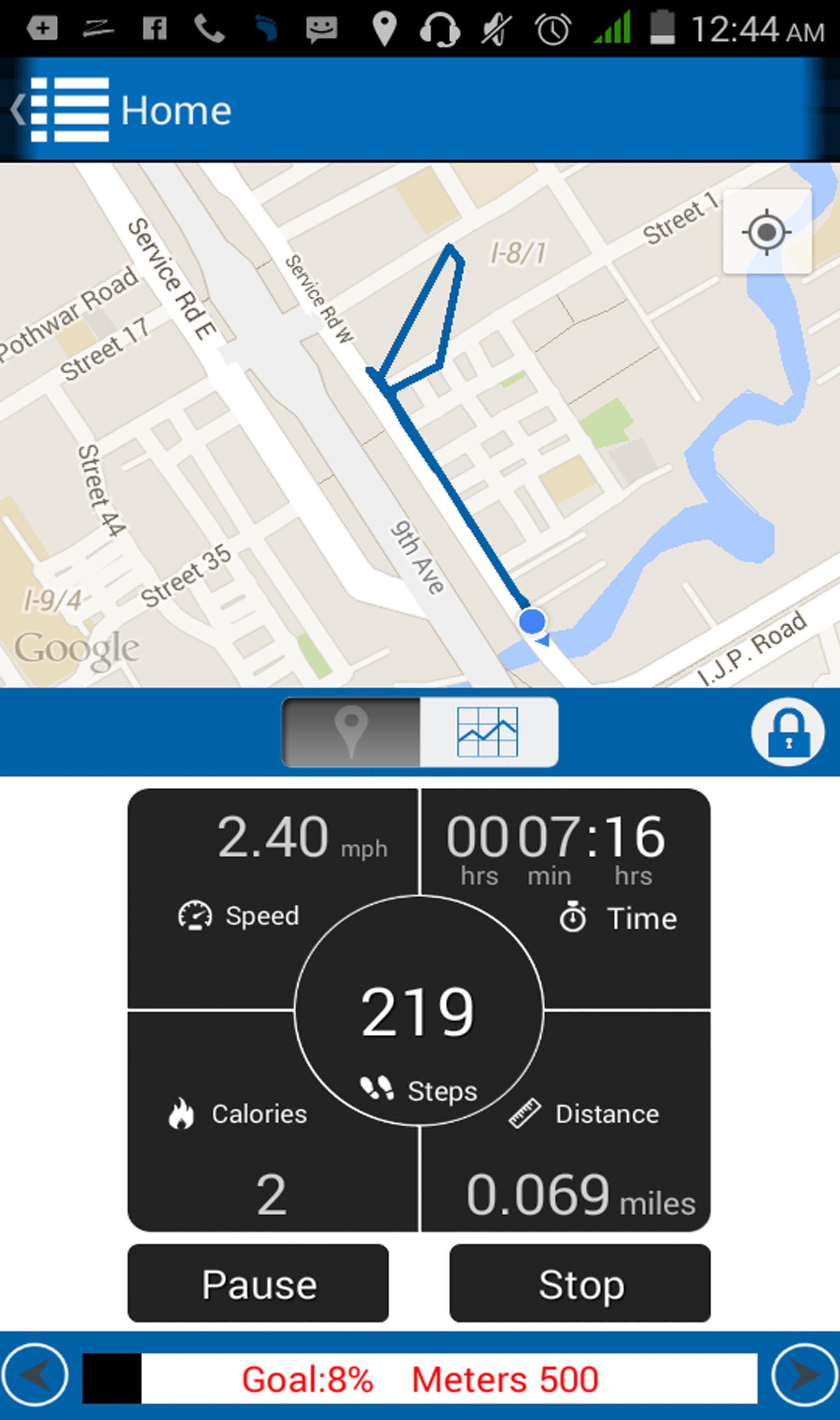 Pedometers are now becoming popular as an everyday exercise measure and motivator. Pedometer is a motivational tool for people wanting to increase their physical activity. The pedometer app tracks your steps while running or jogging to help you reach the goal you have set. By tracking your duration, distance and speed, user can use it to set a new personal record and check your stamina. The application has an interactive and user friendly interface. All the information about exercise selected by the user containing the number of steps taken, number of calories burned, the distance traveled, the speed, the route map and goal set by the user is displayed on one screen and you can easily take a look of it while running. The app also provides the user a guide about running and jogging habits. User can also track his/her progress with a detailed list of history maintained in the application. With this app you will always have the number of steps calories burned and distance traveled in a single window. Daily exercise is important for good health. To maintain good health with this app you can count your daily steps taken, whether you're walking running jogging or just wants to monitor your calories if you want to lose weight.