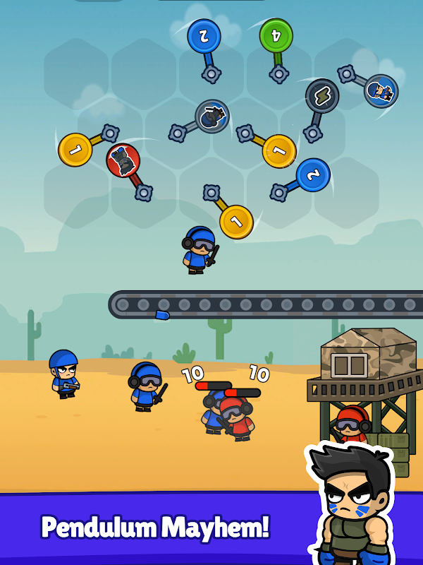 در جنگ آونگ، اسباب بازی جنگی خود را با استفاده از مکانیک نیوتن گهواره بسازید. گوی ها را ادغام کنید، سربازان قدرتمندی را تولید کنید و مهارت های ویرانگر را برای متوقف کردن دشمنان وارده آزاد کنید.