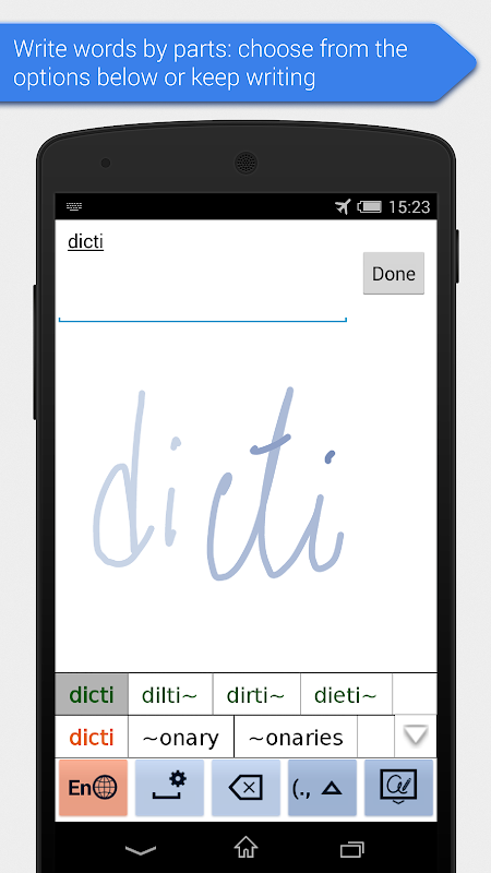 - 'ارسال کلمه توسط بخش' ویژگی شما اجازه می دهد تا به ورودی بخشی از یک کلمه، و سپس PenReader یک پسوند و ارائه گزینه های ممکن برای ادامه حدس می زنم.