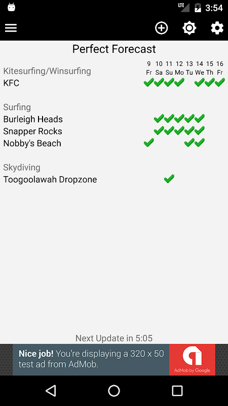 برای کمک به شما ، می توانید تنظیمات بهینه شده برای گشت و گذار / Kitesurfing / Skydiving را حتی برای مکان مخفی خود انتخاب کنید.