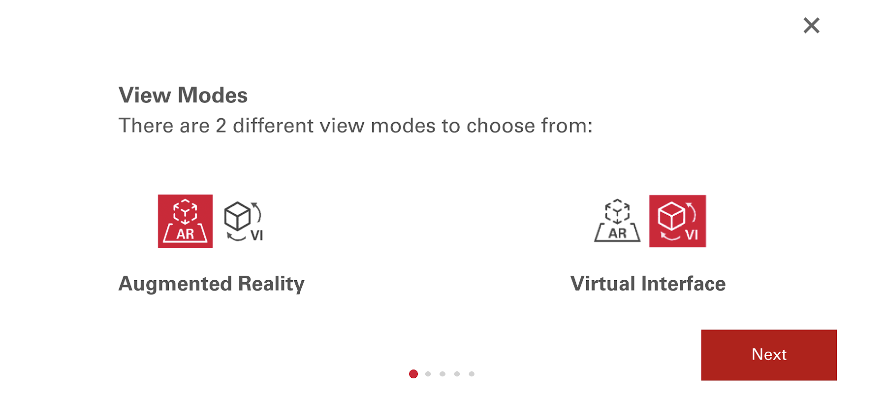- حالت VI: مدل های سه بعدی در یک محیط مجازی با حرکات انگشت. نمای اول شخص را فعال کنید و وارد حالت راه رفتن و پرواز شوید.