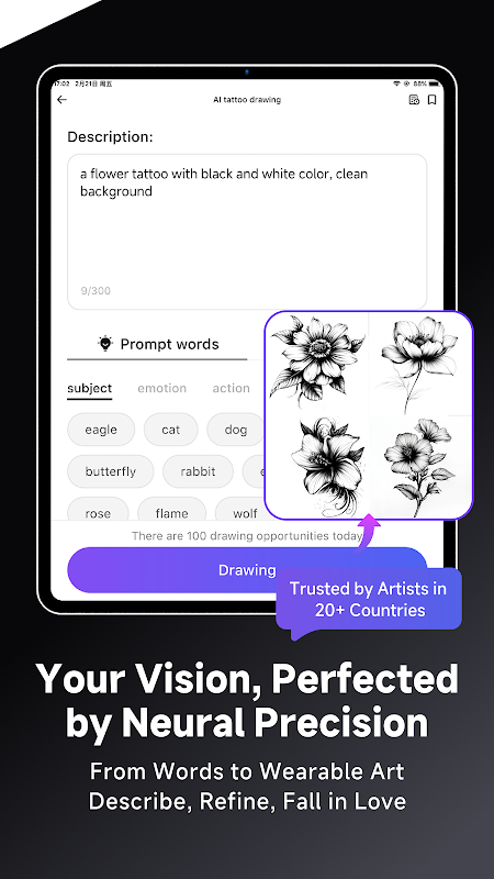 می توانید پیش نویس طرح خالکوبی خود را برای ویرایش و چاپ آپلود کنید.