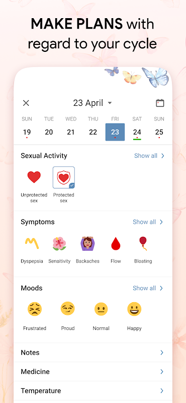 ردیابی جزئیات روزانه با وارد کردن اطلاعات فراوان در مورد جریان قاعدگی، علائم، خلق و خو، دما، وزن، فعالیت جنسی، دارو و حتی نگهداری یک دفتر خاطرات شخصی، آسان میشود. این برنامه که با در نظر گرفتن نیازهای زنان ساخته شده است، به عنوان یک دفتر خاطرات شخصی امن و محافظت شده با رمز عبور نیز عمل میکند که در آن میتوانید تمام یادداشتهای محرمانه و دادههای مربوط به قاعدگی خود را به طور ایمن ذخیره کنید. مطمئن باشید که همیشه میتوانید از دادههای خود نسخه پشتیبان تهیه یا آنها را حذف کنید و از یکپارچگی اطلاعات ارزشمند خود محافظت کنید.