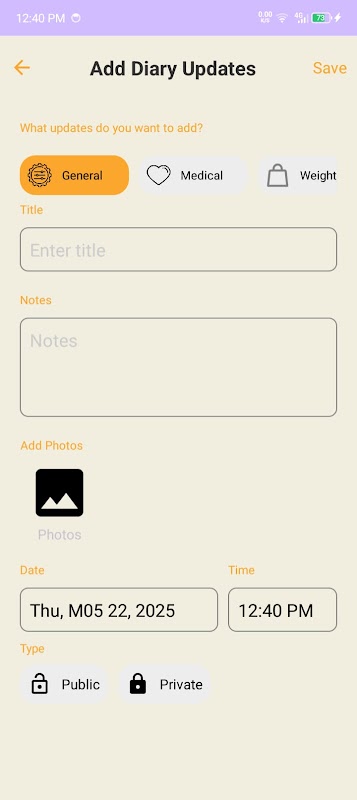 برای هر حیوان خانگی یک دفتر خاطرات داشته باشید تا لحظات خاص، بهروزرسانیهای سلامتی، تغییرات رفتاری یا نقاط عطف را ثبت کنید.