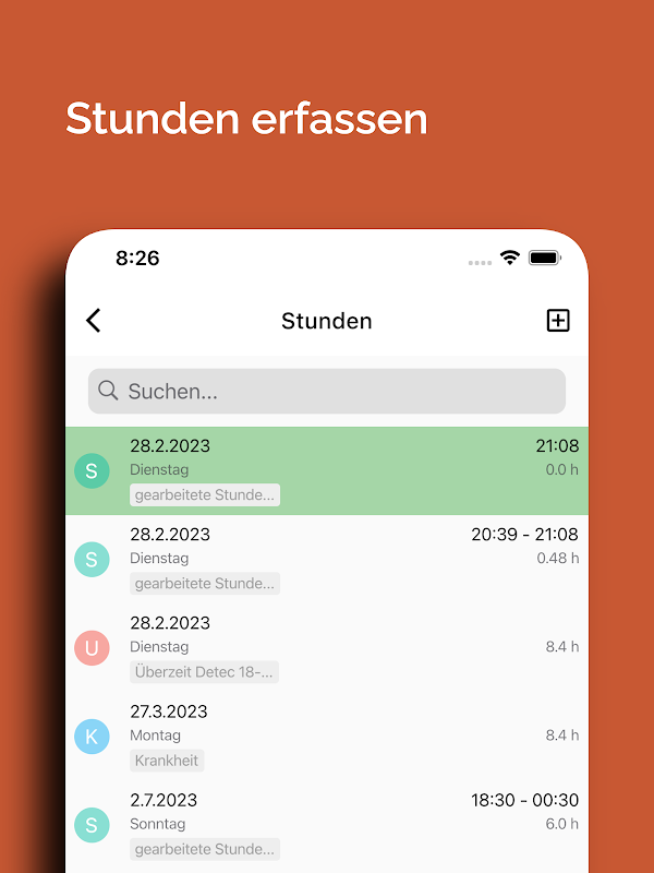 نمای کلی ساعت و تعطیلات از Proffix در هر ورودی ساعت و همچنین در یک نمای جداگانه در دسترس است. این بدان معنی است که همه کارمندان همیشه به طور شفاف در مورد وضعیت شما مطلع می شوند - نیازی به سوال نیست.