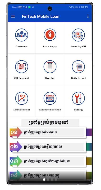 This app is very useful for implementation in financial sector and it is strongly focused on managing FinTech daily operation such as Customer Information, Loan Repayment, Estimated Schedule, daily collection report before posting into Live operation. Currently, it is not real time transaction, as long as the implementation is being performed well Top FinTech Solutions will launch an updated version.