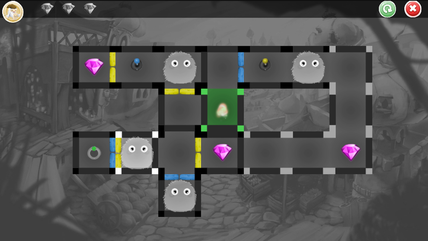 You will have to find different paths to catch all gems in every houses and reach the exits.