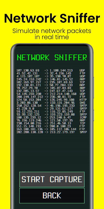 دوستانتان را فریب دهید تا فکر کنند میتوانید بستههای شبکه را به صورت آنی تجزیه و تحلیل کنید. این برنامه گزارشهای داده، ردیابی IP شبیهسازی شده و نقشه اتصال را نشان میدهد - همه برای سرگرمی. یک صفحه نمایش کد هک شده تلفن پر زرق و برق را برای شوخی با دوستان نشان دهید.