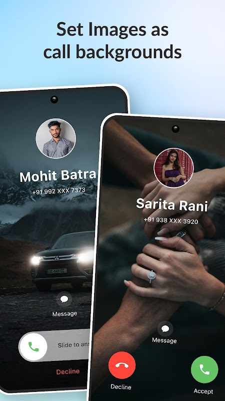 ✅ صفحه نمایش تماس ورودی سفارشی - صفحه تماس خود را با پس زمینه های منحصر به فرد و سبک های مختلف پاسخ به تماس شخصی سازی کنید