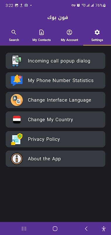 برنامه PhoneBook یک شناسه تماس گیرنده عربی و موتور جستجو برای شناسایی تماس های ناشناس است.