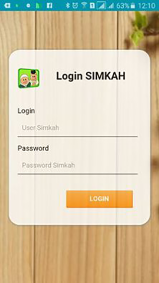 Aplikasi ini berjalan dengan sempurna apabila terdapat jaringan wifi dan server simkah di kantor urusan agama. SIMKAH sebagai aplikasi core (utama) yang berjalan di desktop harus di setting/di tambahkan konfigurasi untuk untuk dijadikan sebagai webbase, dengan jalan cara menambahkan aplikasi webserver dengan konfigurasi sesuai dengan database yang ada.