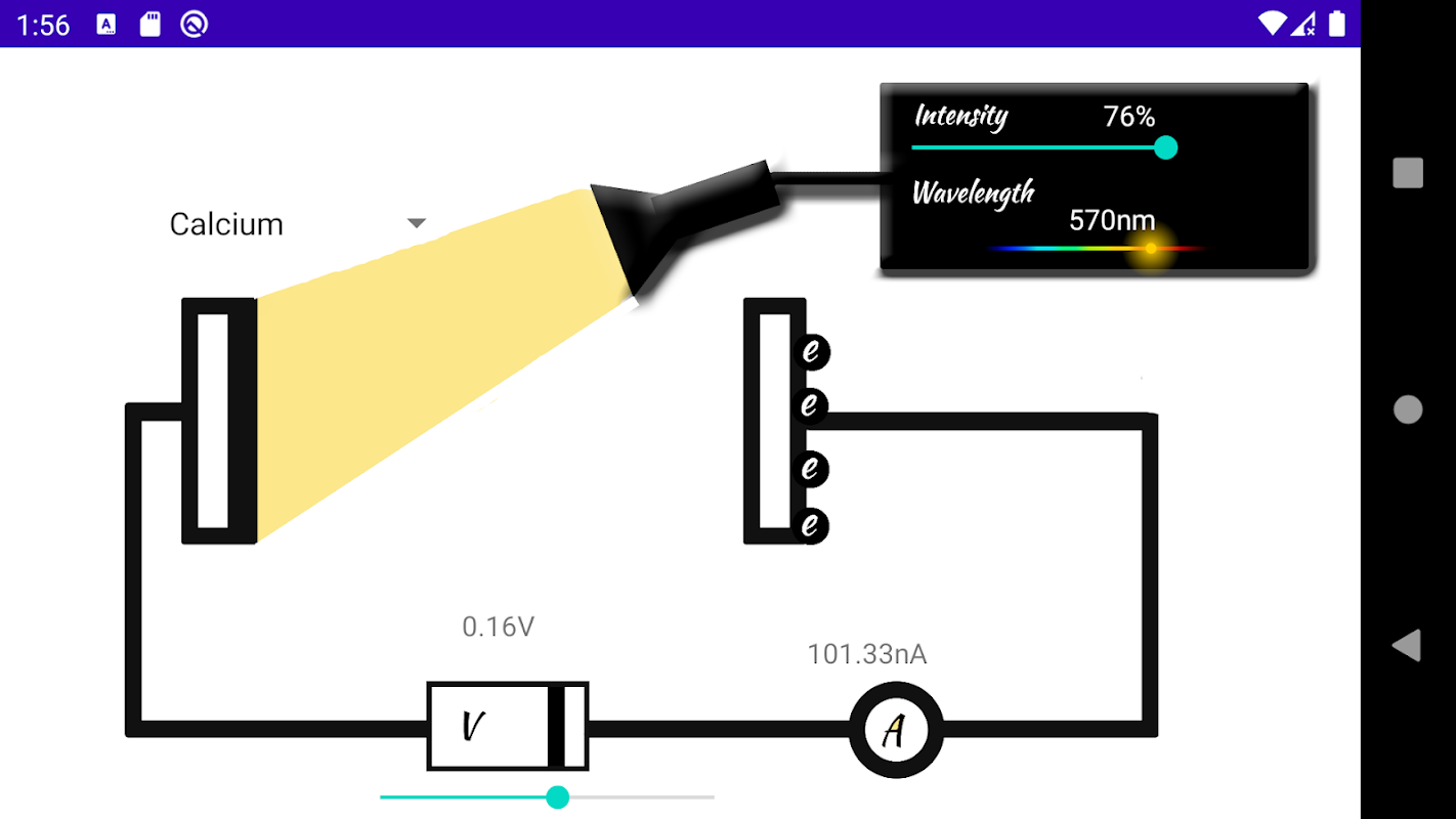 این برنامه شبیه سازی برای جلوه Photoelectric را ارائه می دهد. امکان تنظیم چندین متغیر از جمله: