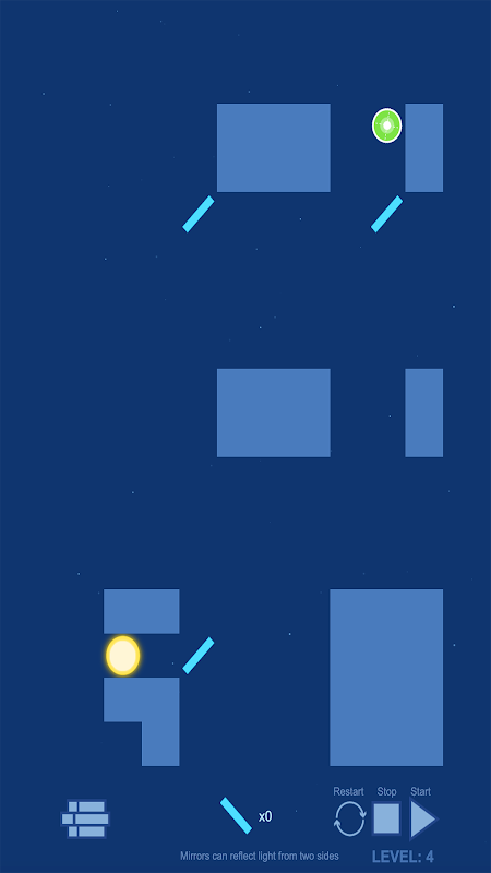 An brain teaser game. Position the mirrors in the correct place so your device gets the sun beam.