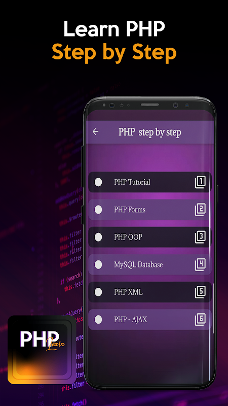 آموزش گام به گام PHP: هر آنچه که مربوط به زبان پی اچ پی است را در برنامه خواهید دید که به طور کامل و واضح توضیح داده شده است، درس ها برای سهولت دسترسی به چندین بخش تقسیم شده اند و مهم ترین بخش ها: