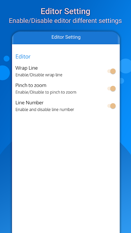ویژگیهایی مانند wrap، pinch to Zoom، فعال و غیرفعال کردن شماره خط