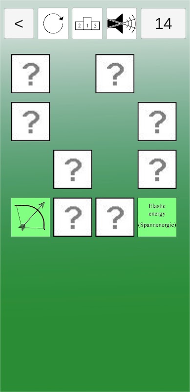 Pair matching: Too cards belong together. E.g. the card with the running person and the card with the lettering "Kinetic Energy". If you play this game, you will remember thigs with fun which you need for school.