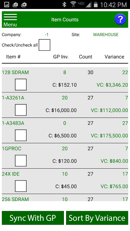 این برنامه به شما امکان می دهد موجودی خود را به طور موثر بشمارید و با Microsoft Dynamics GP همگام سازی کنید. ویژگی های زیر موجود است.
