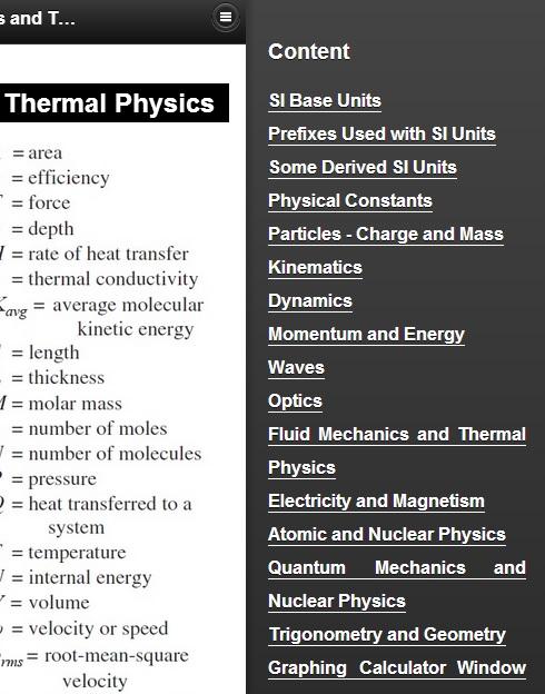Physics Formulas and Equations is a nice app with elementary Physics Formulas.