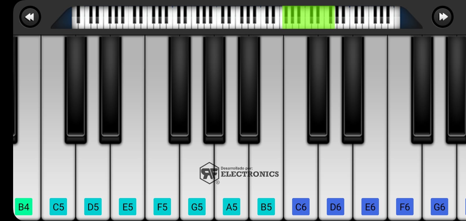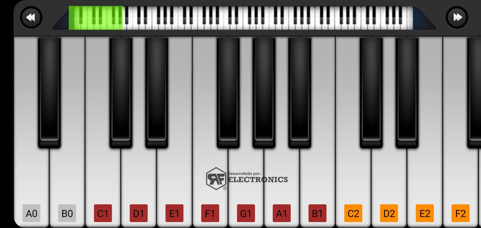 از صفحه لمسی دستگاه خود برای پخش کلیدهای پیانوی شبیه سازی شده با صدای واقعی کلیدهای پیانو استفاده کنید.