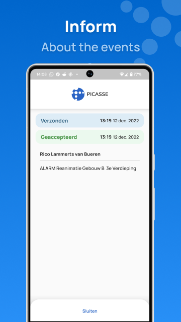 برنامه Picasse استفاده می شود برای دریافت پیام های زنگ ارسال شده توسط پلت فرم ارتباط Picasse. گیرنده قادر به قبول / رد یا تأیید خواندن این پیام است. این پاسخ با فرستنده در زمان واقعی به اشتراک گذاشته. این برنامه همچنین حضور خود را به سیستم برای مکان داده می فرستد.
