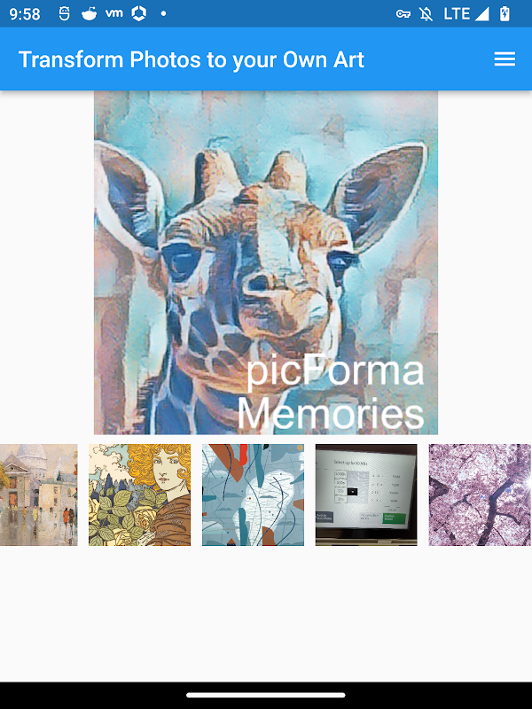 میتوانید هر تصویری را بهعنوان «فیلتر» هوش مصنوعی خود آپلود کنید یا از میان «فیلترهای» ارائهشده هوش مصنوعی در برنامه ما انتخاب کنید. یک عکس جدید بگیرید یا عکس هایی را از تلفن خود انتخاب کنید. فیلتر هوش مصنوعی خود را اعمال کنید تا عکسهای خود را به هنر AI شخصی تبدیل کنید - که منحصراً متعلق به خودتان است. سریع، آسان، سرگرم کننده و رایگان است!