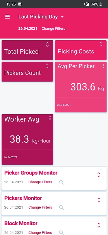 کشاورزان از رایانه شخصی و داشبورد تلفن همراه خود برای فیلتر کردن، تجزیه و تحلیل و دسترسی به بینش ها و نتیجه گیری استفاده می کنند. تجزیه و تحلیل از طریق نمودارهای تجسمی و نمودارهای دایره ای ارائه می شود و شامل حضور و غیاب کارگران، نرخ انتخاب، کل فعالیت روزانه، نرخ عملکرد و موارد دیگر است.