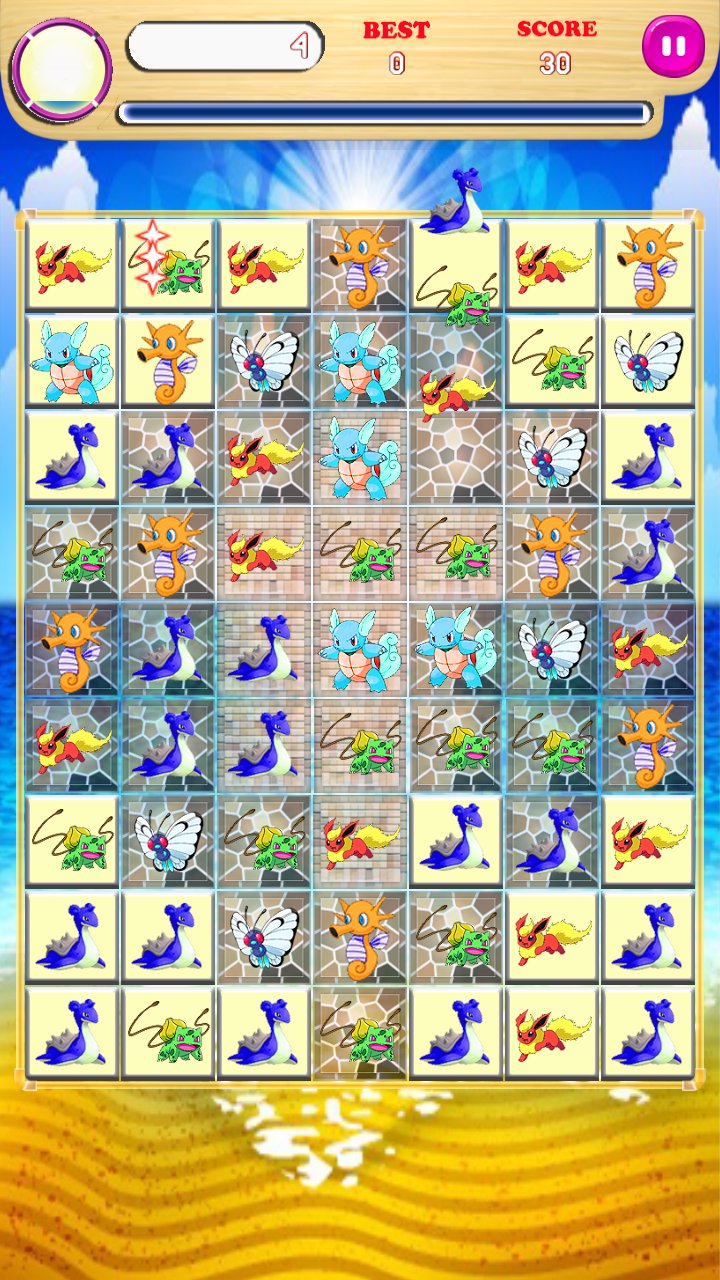 - Match 4 pokemons can win the pokemon's bomb and 1 lighting.
