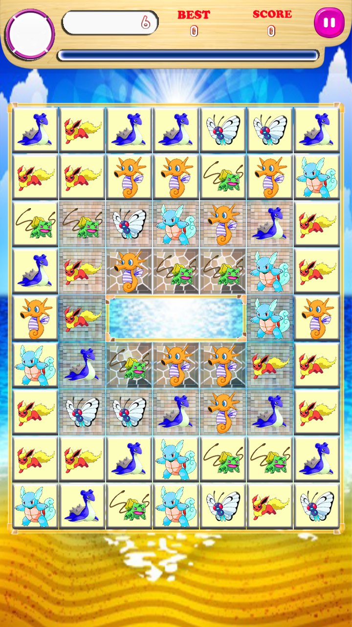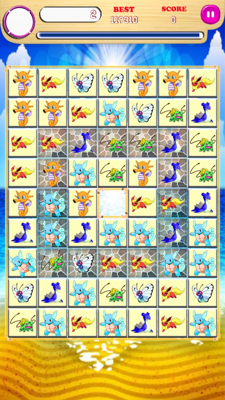 2: Match the diamonds until the board transparency,the Pikachu Cake will appear.