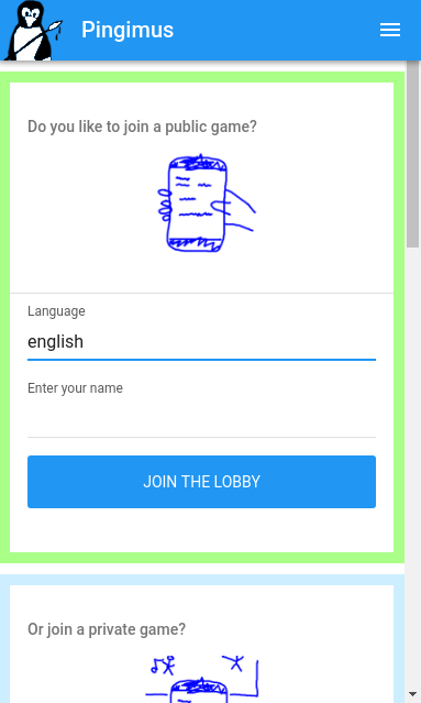 Pingimus (از لاتین: "رنگ ما") یک بازی حزب با حداقل 3 (بهتر 5) تا 15 بازیکن انجام میشود. در 3 فاز بازی هر کس یک) تساوی یک عکس برای یک کار ب داده شده) به نظر می رسد در تصاویر از بازیکنان و حدس دیگر، آنچه که وظیفه خود را ج) در میان حدس را انتخاب کنید و سعی کنید برای مطابقت وظیفه اصلی است. امتیاز دهی: هر کس، که حدس در فاز ج انتخاب شد) می شود نقاط، و نقاش از یک تصویر می شود نقاط، در صورتی که کار اصلی انتخاب شد.