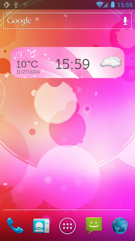 Take this new pink clock widget and match it with your stylish pink wallpaper or live wallpaper! This lovely weather widget and digital clock widget at the same time is something you have always needed for your phone. Choose among various beautiful widget skins and make your home screen look wonderful. Don't let the bad weather influence your mood, with these beautiful widgets you will always have a smile on your face and the sun will shine for you all day every day.